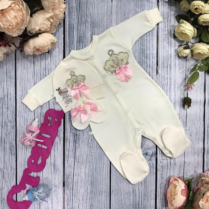 Купить оптом 338-М. Комбинезон детский из муслина, хлопок 100%, размеры 56,62,68, молочный в Выборге