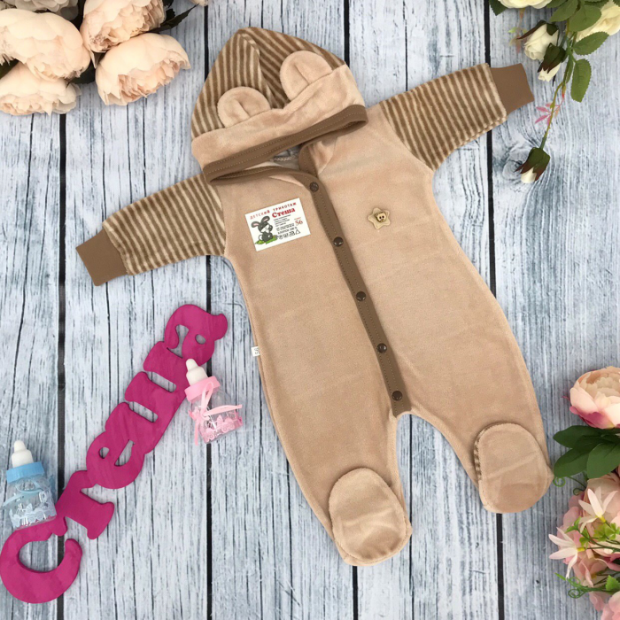 Теги: Купить велюровый комбинезон оптом от производителя. 225. Комбинезон с шапкой, 80% хлопок велюр, 20% ПЭ 56,62,68,74 цена,отзывы официальный сайт "Стеша Выборг"