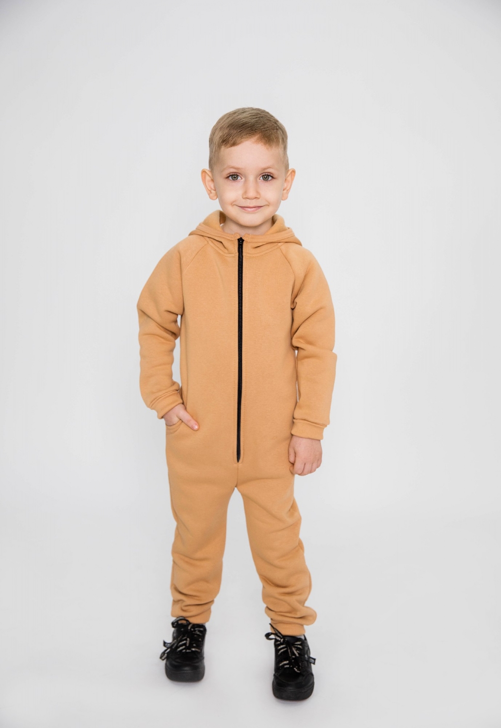 Купить оптом 318-ТК. Комбинезон на молнии с капюшоном, темно кофейный, хлопок 65%, 35% ПЭ, 3 нитка толстовка (начёс) 86,92,98,104 в Выборге