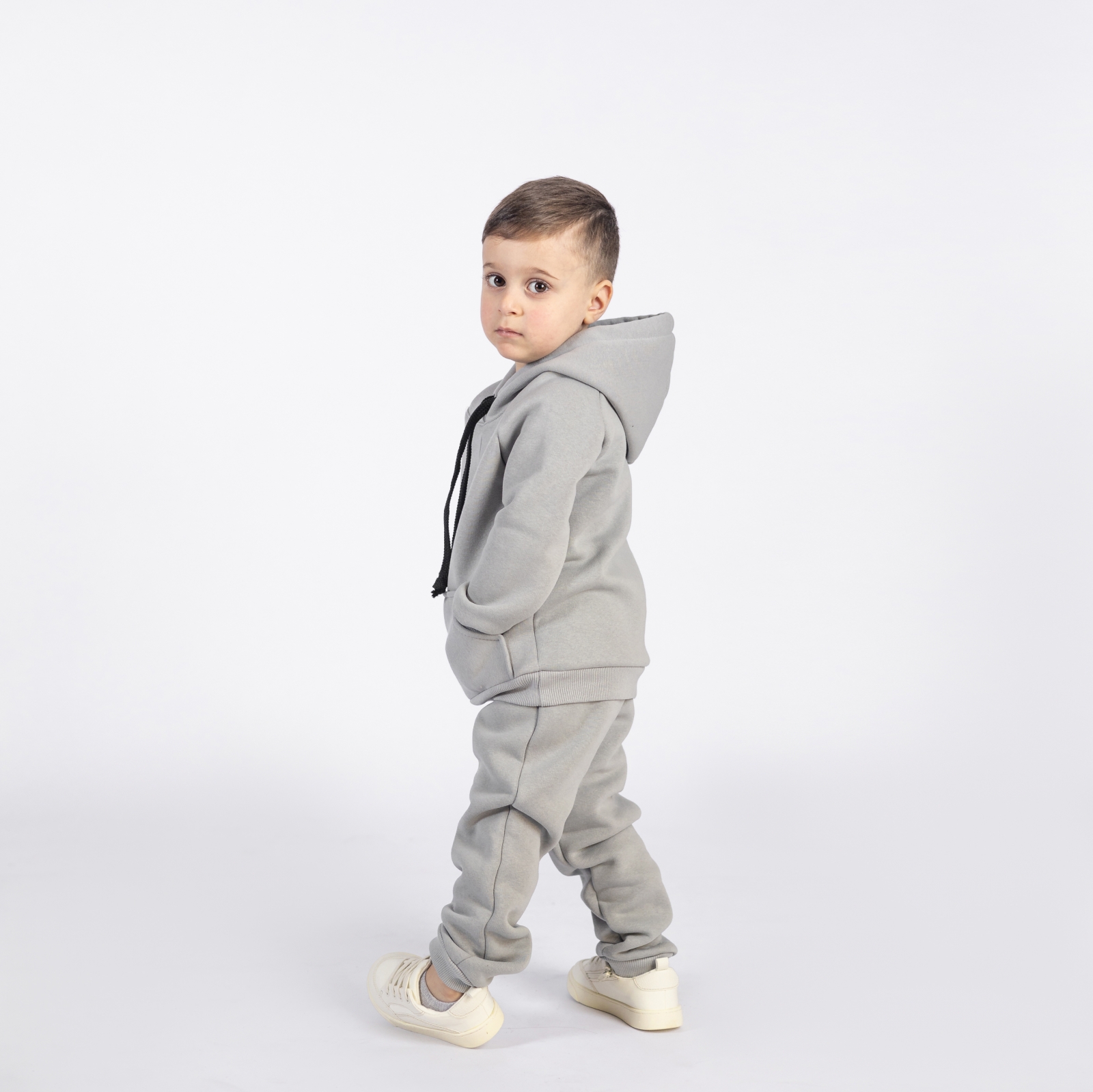 Купить оптом 296-С. Свитшот с капюшоном + Штаны, хлопок 65%, 35% ПЭ, 3-х нитка (начес) серый 80,86,92 в Выборге